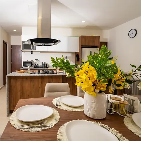 Quest'appartamento offre comodi servizi di self-catering, tra cui un angolo cottura attrezzato con un bollitore elettrico, un frigo e una vetreria. L'aeroporto Internazionale di Cancún si trova a 5 km dall'appartamento.